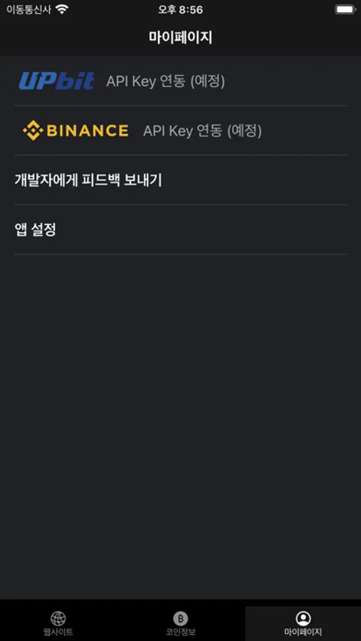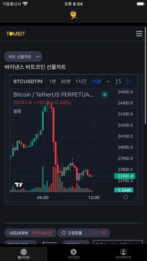 - 톰비트 웹사이트 인앱 확인 가능