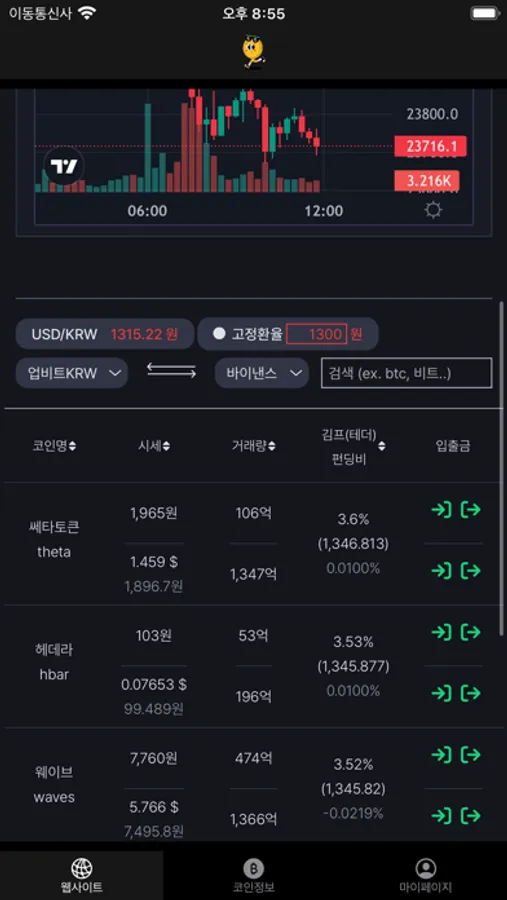 - 실시간 미국달러 환율 정보, 선물 펀딩비 지표 확인 가능