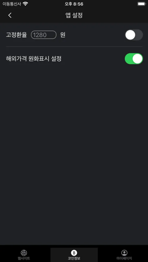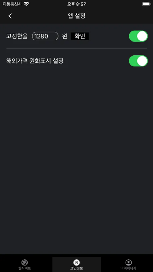 - 고정 환율 설정으로 고정 환율 기준 김치프리미엄 확인 가능