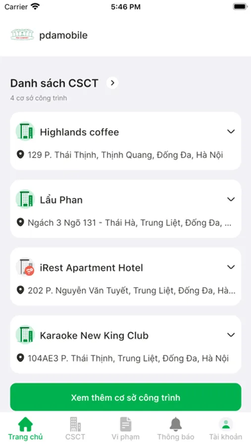 Ứng dụng SFUL PRO cho chủ cơ sở, người quản lý cơ sở, công trình thực hiện quản lý thông tin cơ sở dữ liệu PCCC và truyền tin báo sự cố của cơ sở công trình gồm có 02 chức năng chính