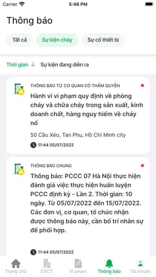 2. Truyền tin báo sự cố trên Ứng dụng để quản lý thông tin về thiết bị truyền tin báo sự cố đã tích hợp vào hệ thống báo cháy của cơ sở để tự động truyền tin cảnh báo sự cố từ hệ thống pccc cơ sở để kết nối cơ quan PCCC&CNCH, chủ cơ sở, nhiều đối tượng để xác minh cháy, thông báo cháy nổ một cách tự động, nhanh nhất, sớm nhất qua ứng dụng, cuộc gọi, sms để các đơn vị PCCC có thể xử lý sự cố kịp thời đảm bảo an toàn con người, tài sản và an ninh, trật tự xã hội.