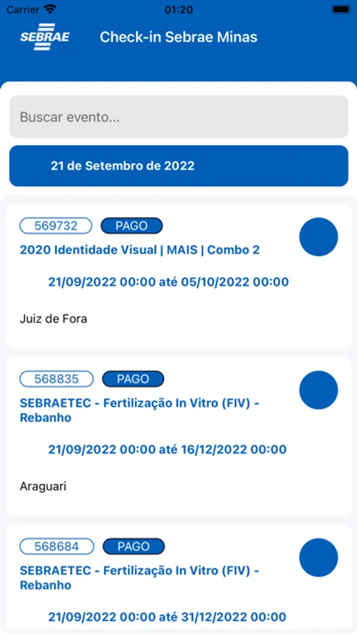Aplicativo para realização de confirmação de presença automatizada em cursos e eventos do Sebrae-MG.