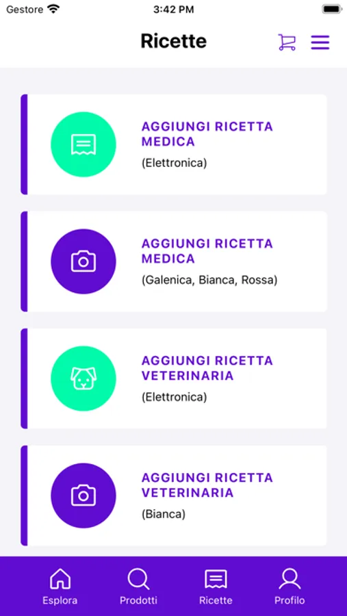 Un unico punto per gestire tutti i tipi di ricette da quelle elettroniche fino a quelle galeniche, bianche o rosse. Basta inserire negli appositi campi i parametri della ricetta oppure scattare una foto per mandarla al farmacista.