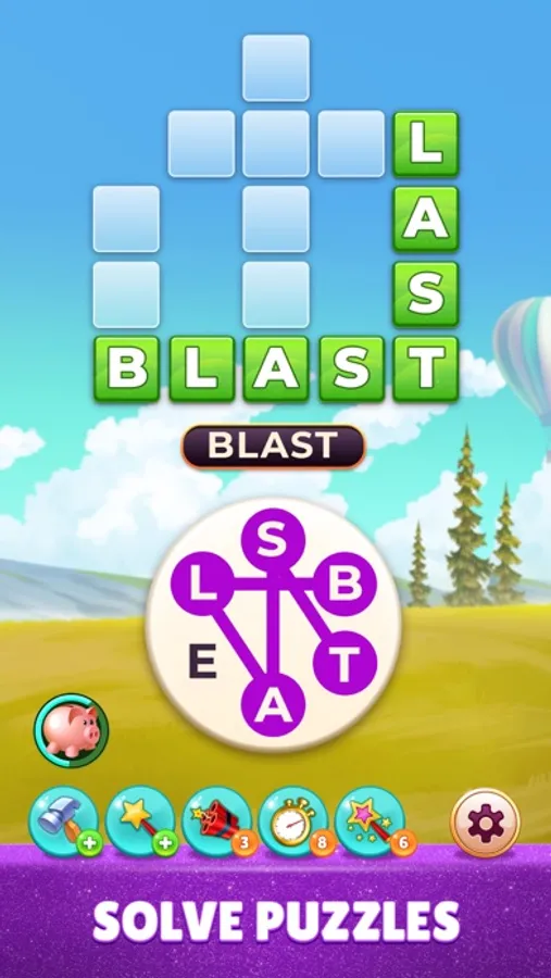 ► Boosters - If you're ever having trouble solving a word puzzle, tap on the fireworks or hammer to reveal puzzle letters, or blast away an entire word with dynamite. Don't forget that the magic wand is also only a tap away.