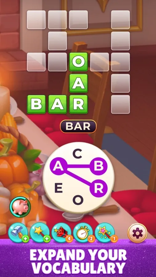 ► Gameplay - Solve each level by completing a word puzzle - connecting the letters and spelling words that fit perfectly into the crossword puzzle blocks.