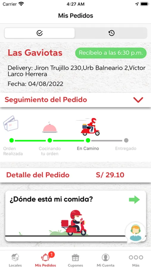 - Conocer cómo va avanzando tu orden (desde que se empieza a cocinar hasta que está en tus manos).