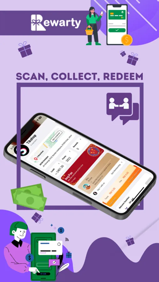 physical member card is needed, all rewards will be shown in Rewarty APP. Let's reduce the usage of plastic and paper and save the earth. No more leaving member card at home. All you need to do is to provide phone number.