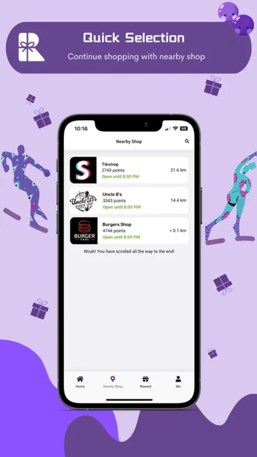 You can discover nearby shop in Rewarty and visit them to make purchase. Nearby shops which work with Rewarty will be listed according to your location.