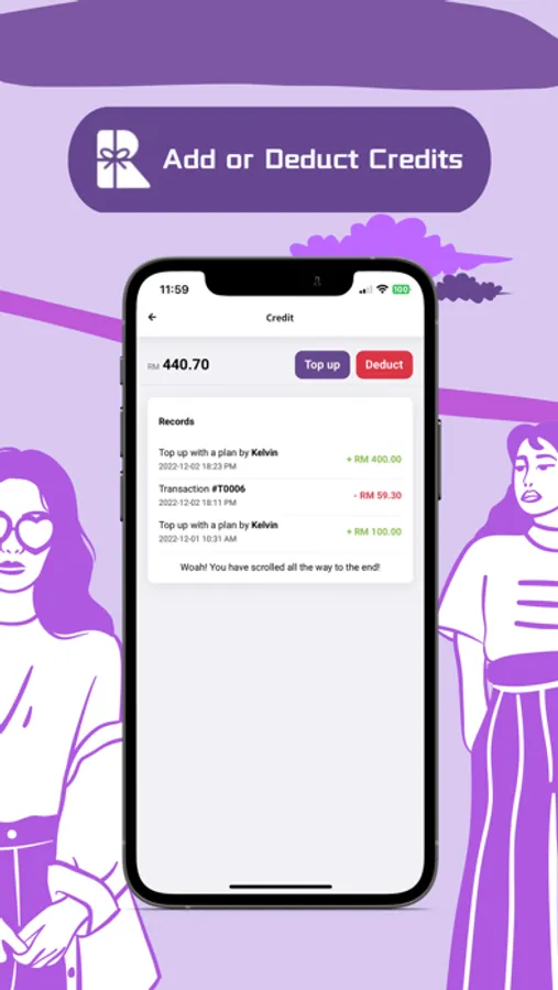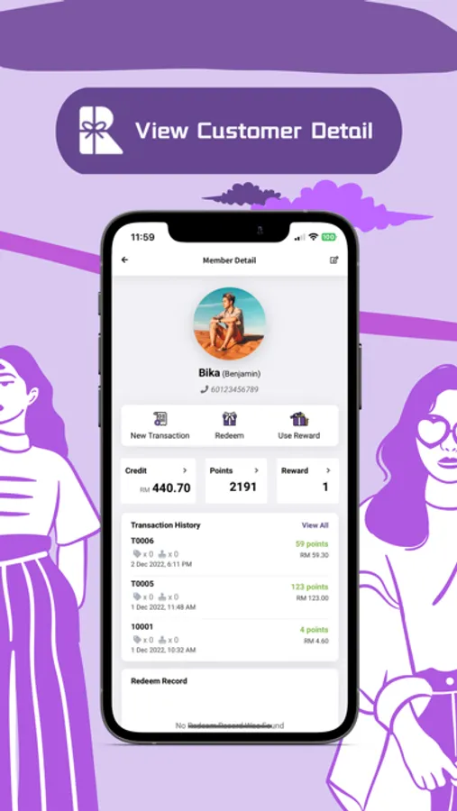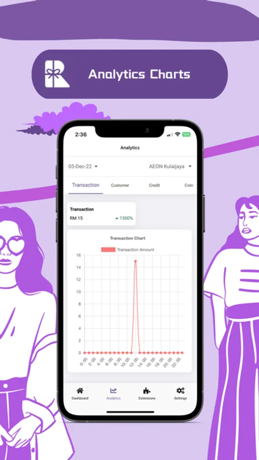 Data Analytic - Data of transactions and members will be sort and calculated. This helps to check daily transaction and active members.