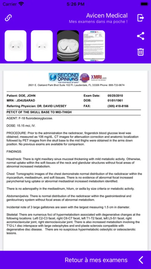 Toutes vos données sont alors sauvegardées dans votre appareil mobile, vous pouvez les consulter et les partager à qui vous le désirez. Vos examens sont en sécurité dans votre poche, pas sur internet !
