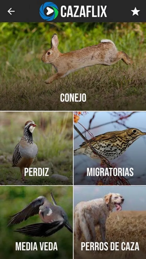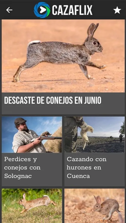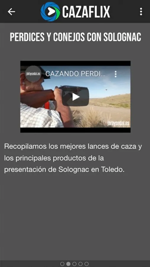 App de la plataforma streaming de vídeos de caza Cazaflix. Cientos de vídeos, documentales, películas y todo lo relacionado con la caza en tu smartphone y tablet. Caza mayor, menor, internacional, pruebas de equipación...