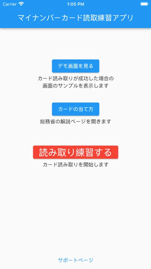 本人確認などでマイナンバーカードをスマホで読み取る機会が増えています。それを練習するアプリです。パスワードの入力は不要です。