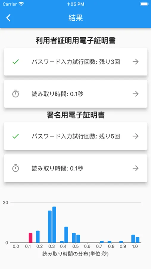 また、カード読み取りにかかった時間を表示するのでカード読み取り性能を簡易的に確認できます。