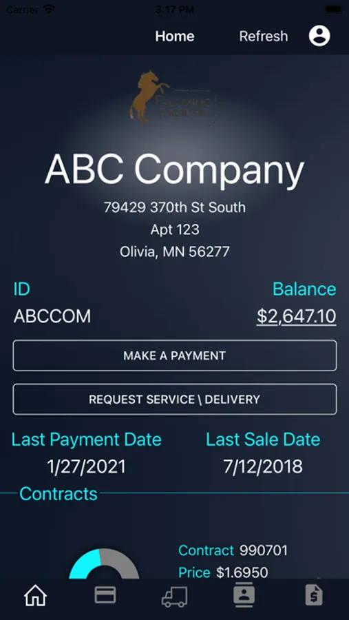 Information at your fingertips! This app gives you direct access to your account balance, location and contract information. It also gives you the ability to store and process payment and request service work and deliveries directly through the app.