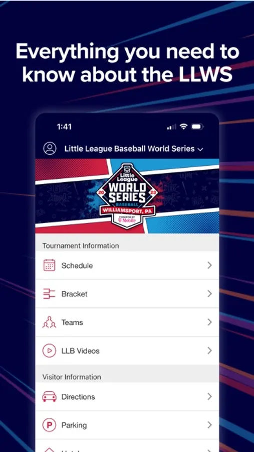 •View game schedules, brackets, teams, visitor information and more for each LLWS tournament