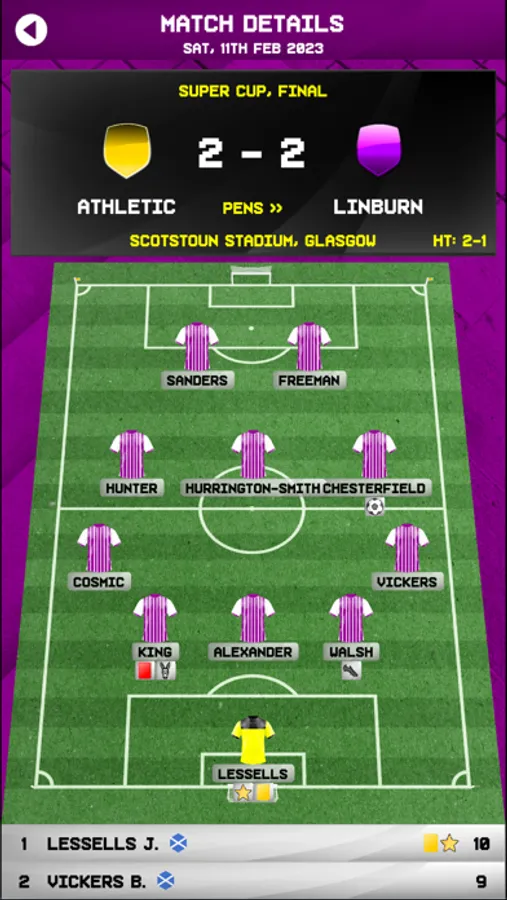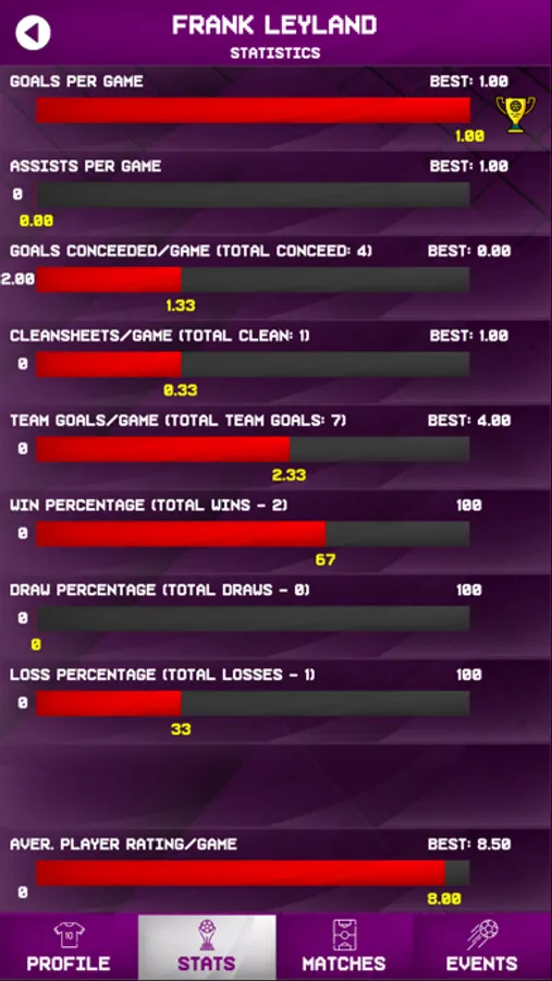 Matches - keep records of all games including goal and assist information, player ratings, line-ups, substitutes, formations and more!