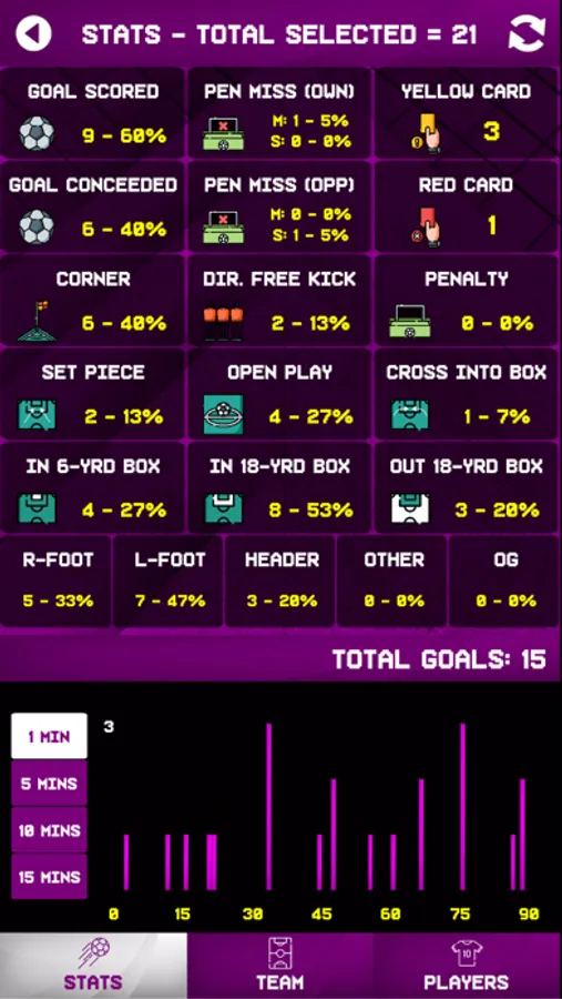 Stats - breakdown of your clubs stats, see where and how your team are scoring and conceding goals!