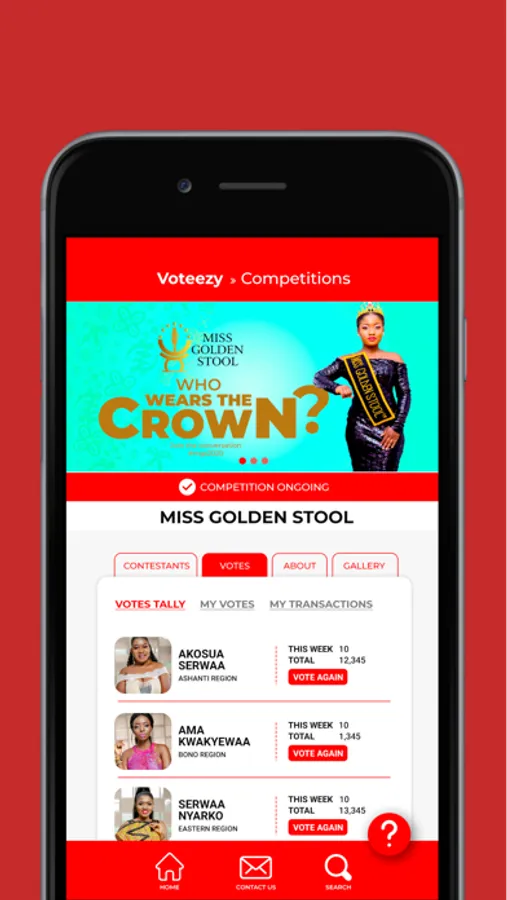 Voteezy is a multiplatform voting system that allows users to vote on USSD, the voteezy.com website, and mobile apps.