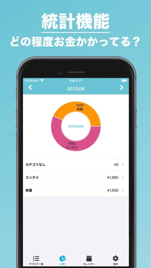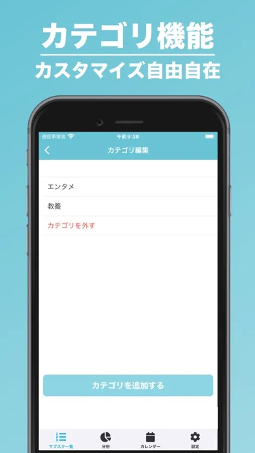 数ステップでサブスクを登録できるので、是非全てのサブスクを登録しましょう!さらにサブスクごとにカテゴリを指定することもできます。カテゴリは、自分でカスタマイズ可能です!