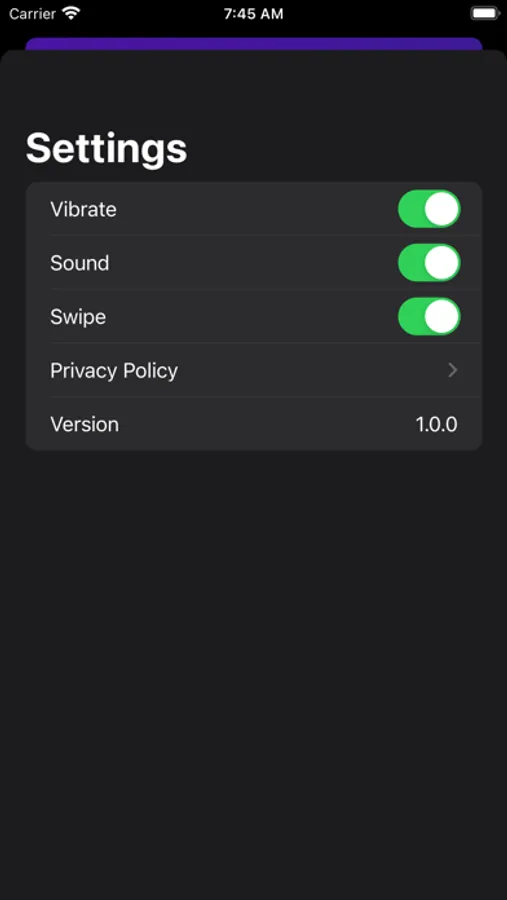 - You can set whether to vibrate, sound, or swipe by pressing the Settings button at the bottom right.