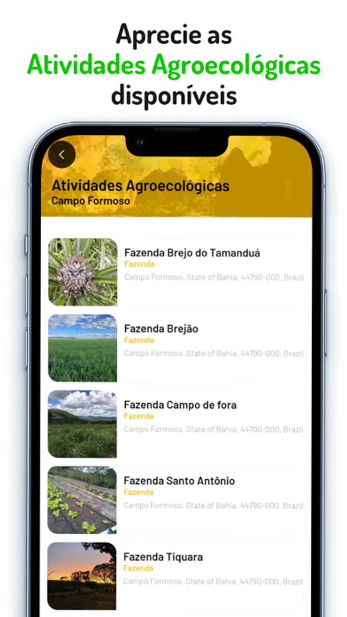 - Atividades agroecológicas vai permitir o recebimento da comitiva turística, com opção de vendas de produtos orgânicos;