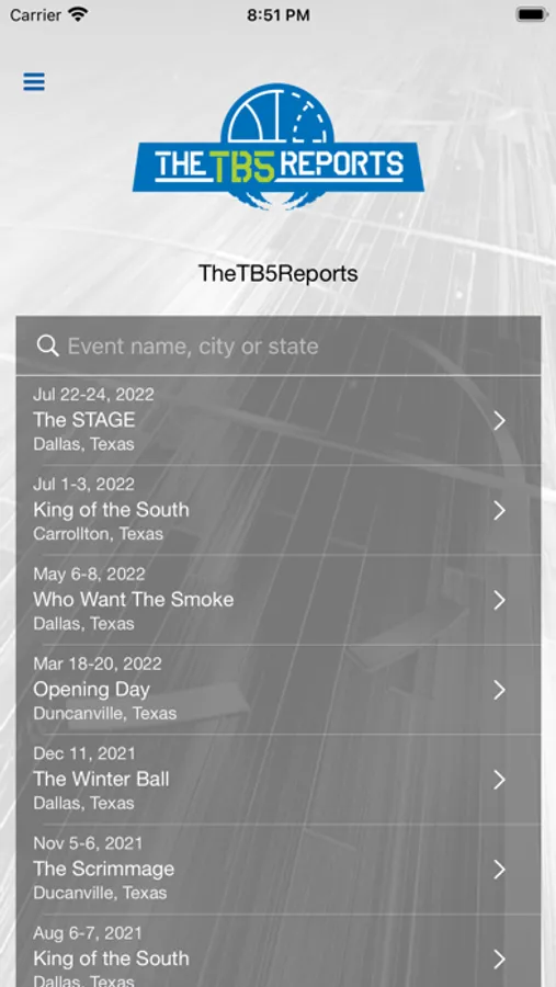 The TheTB5Reports app will provide everything needed for team and college coaches, media, players, parents and fans throughout an event.