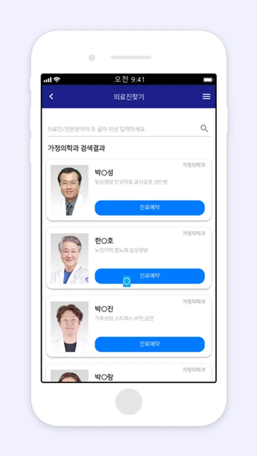 모바일앱에서 진료예약을 간편하게 할 수 있습니다.