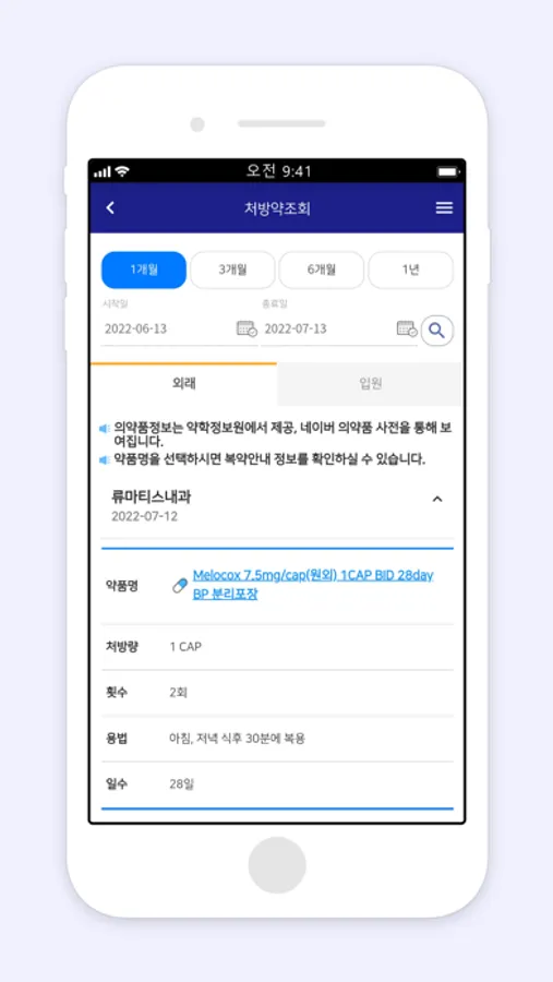 외래, 입원 모두 확인 가능해요