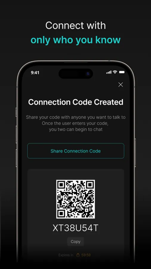 You are connected with your friends only by manually sharing the code, which prevents any unintended exposures to people in your contacts.