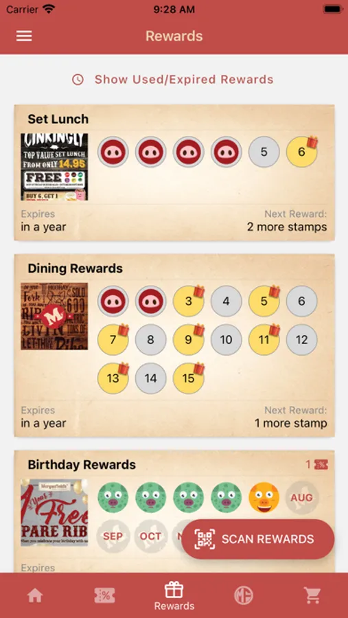 • Reward system for visits, set lunch purchases & birthday celebrations.