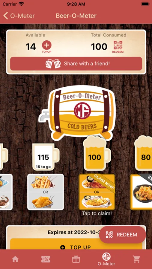 • Top up beer credits at special prices for own consumption or to be sent to a friend as gift.