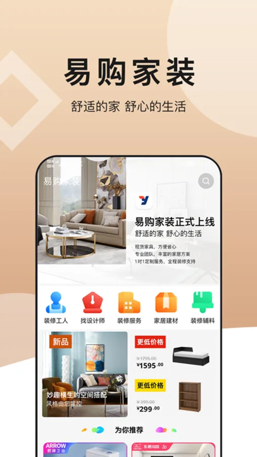 易购家装是中国首家线上线下“互联网+”装修产业用户诚信交易保障平台,致力于免费为会员用户提供一站式家装生活保家护航服务。