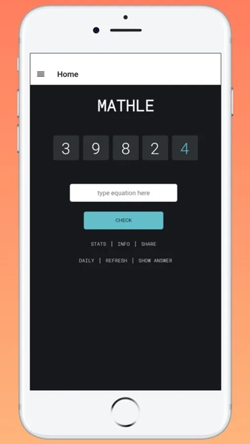 Mathle Is a math-based word game where you can test your arithmetic skills to guess the equation, Guess the equation in 6 tries. After each guess, the color of the tiles will change to show how close your guess was to the solution. Each guess is a calculation and standard order of operations applied. Yellow tile means the number is in the wrong spot. Gray tile means the number is not included in the equation. Tiles will only go green if the number is in the correct tile. Keyboard will also change color according to your guess.