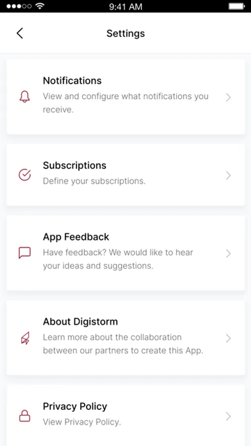 Settings allows you to manage the frequency and type of notifications that you receive from Clinton.