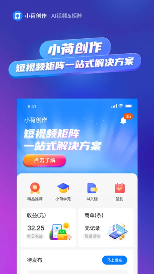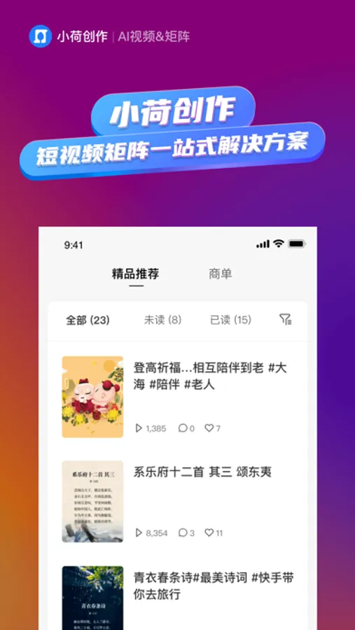 小荷创作: 小荷创作是一个集素材管理、视频生成、自动发布和数据统计于一体的智能高效分发平台,能够为企业提供一整套全自动化内容矩阵运营解决方案,帮助企业快速构建账号矩阵,引爆内容,增长获客。