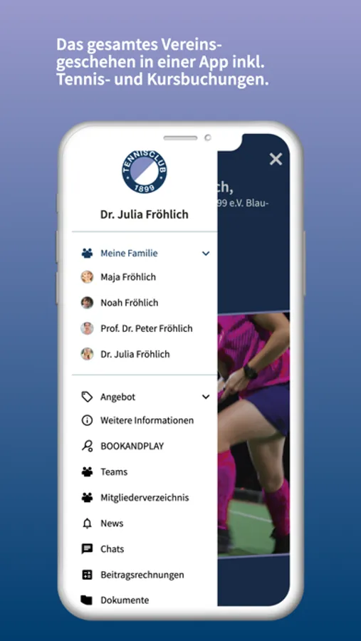 Mit der neusten Version der TC 1899 e.V. Blau-Weiss Mitglieder-App haben Sie an einem Ort stets alle relevanten Clubinformationen- und Kontakte zur Hand. Buchen und stornieren Sie Ihre Tennisplätze, kaufen Sie Karten für Events, ändern Sie Ihre Kontaktdaten mit nur wenigen Klicks, verwalten Sie auf Wunsch auch die Daten Ihrer Kinder, und vieles mehr ist jetzt kompakt über unsere App verfügbar.