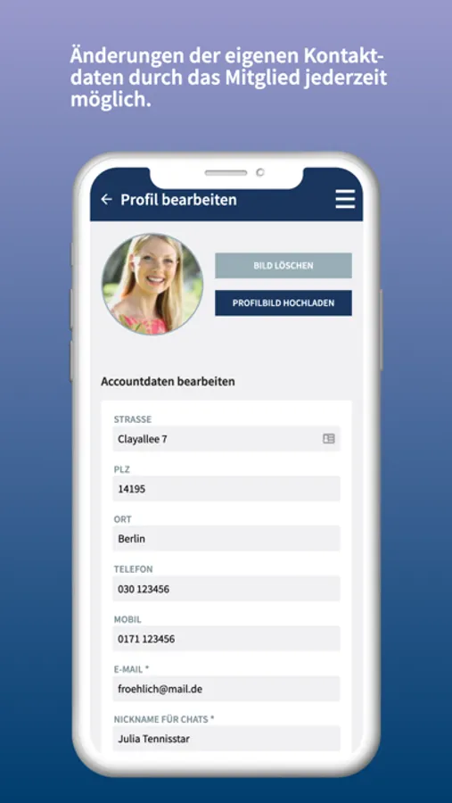 - Selbstverwaltung von Stammdaten: Ändern Sie Ihre eigenen Kontaktdaten oder die von Ihren Kindern jederzeit selbst und laden Sie ein eigenes Profilfoto hoch.