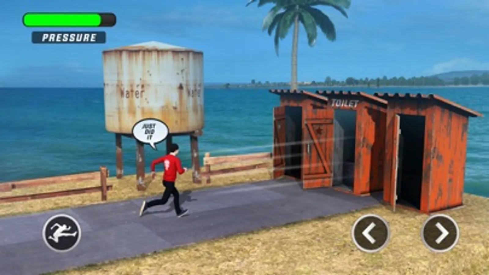 Welcome to the most funny game. You have partied a lot and you had lot of drinks and now you need to rush to the bathroom to pee. But unfortunately the restrooms in the party area are under renovation and hence you need to find a rest-room out side. Run and find the restroom. You have to rush to the bathroom as you have had many drinks. If you don’t rush then the pressure will increase so better hurry up.