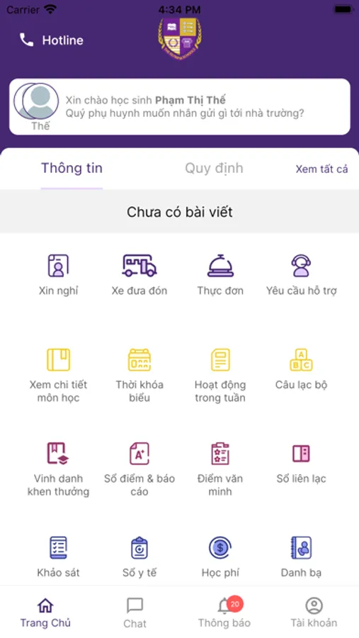 Ứng dụng di động dành cho Phụ huynh của Hệ thống tương tác Trường học thông minh. Giúp phụ huynh cập nhật những thông tin nhanh nhất về tình hình học tập, thông báo từ Nhà trường