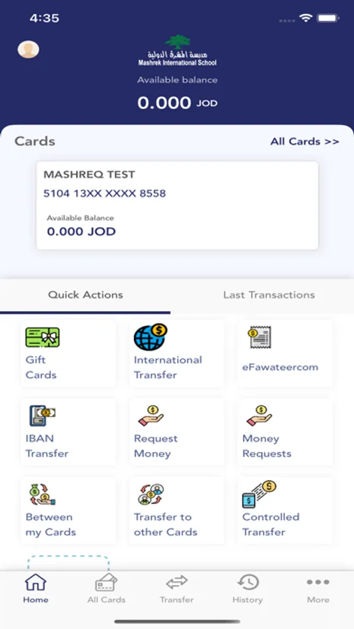 Mashrek International School's Cashless Payment Application allows parents to manage their children's payments at school. This is done via individual electronic cards or bracelets that are available with the student. They can be filled up with balance through the parent account and utilized to settle payments at school in an easy and efficient manner.