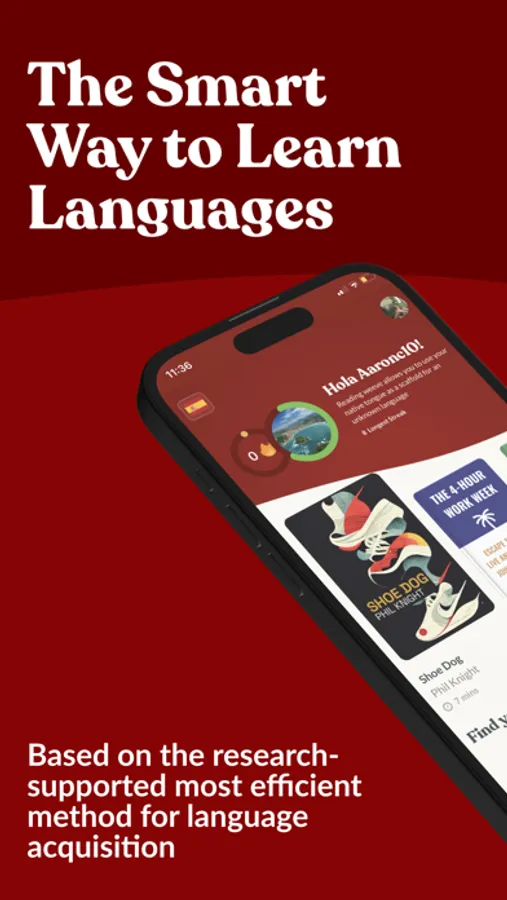 We weeve foreign words into the most interesting stories so you can learn a language entirely through reading/listening. The weeve app library is stacked with condensed 15-minute summaries of the world's top must-read books. Immerse yourself every day in a new world of vocabulary from best-sellers like James Clears' Atomic Habits, Yuval Noah Harari's Sapiens or Mark Manson's The Subtle Art of not Giving a F*ck all while seamlessly acquiring a second language without trying. For only 15 minutes per day.