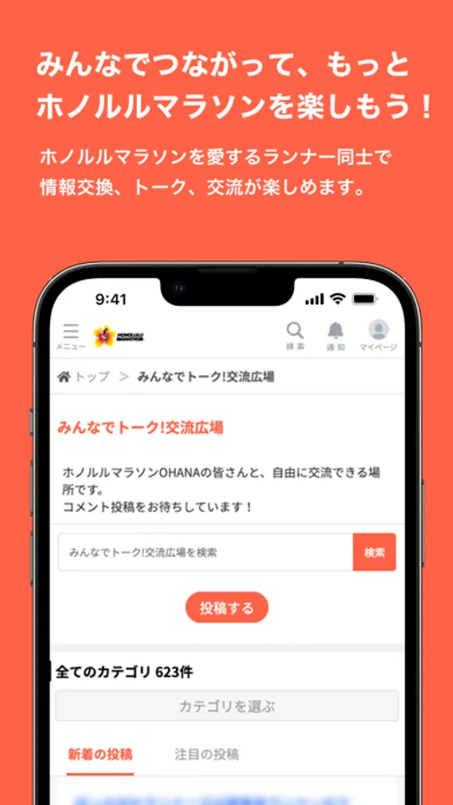 ◆ユーザー同士でホノルルマラソンに関する情報交換、トーク、交流ができる!