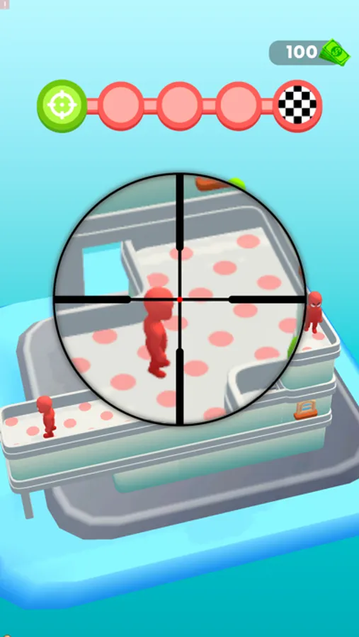 Both you and your enemy are moving, adding a degree of complexity. Fortunately, your sniper scope has a useful marker. Pay close attention to the aiming reticule and line up your shots like a pro.