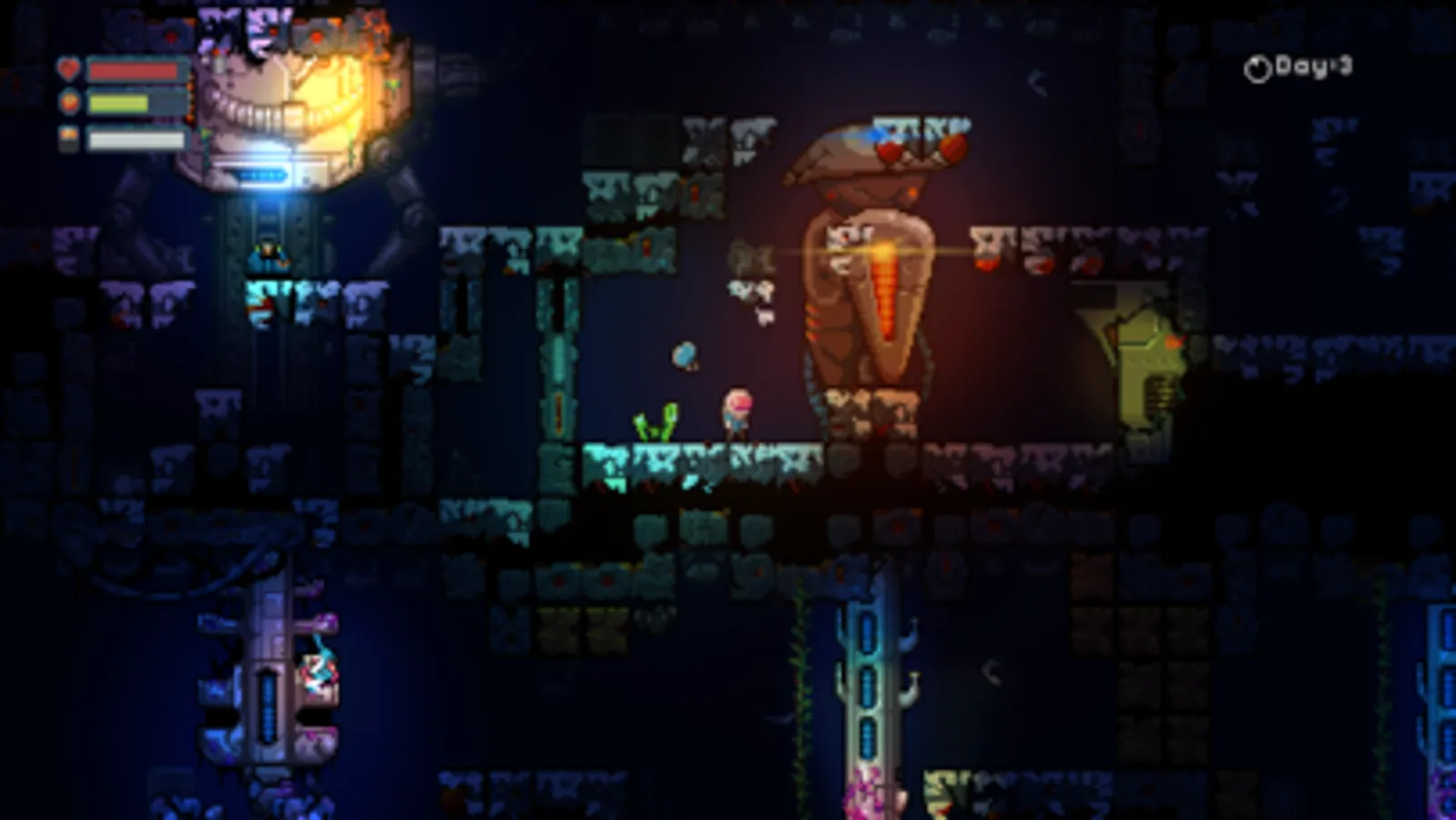 Residual welcomes players to a non-violent survival experience with limitless possibilities and no traditional combat. Jump and descend through colorful, highly detailed pixel art evoking classic 2D platformers. Solve light puzzles to reveal secrets of a long-lost civilization. Select a male, female, or non-binary protagonist, customize survival parameters like how fast time advances, and race to repair the ship, dig up ancient secrets, or collect data entries on hundreds of undiscovered objects.