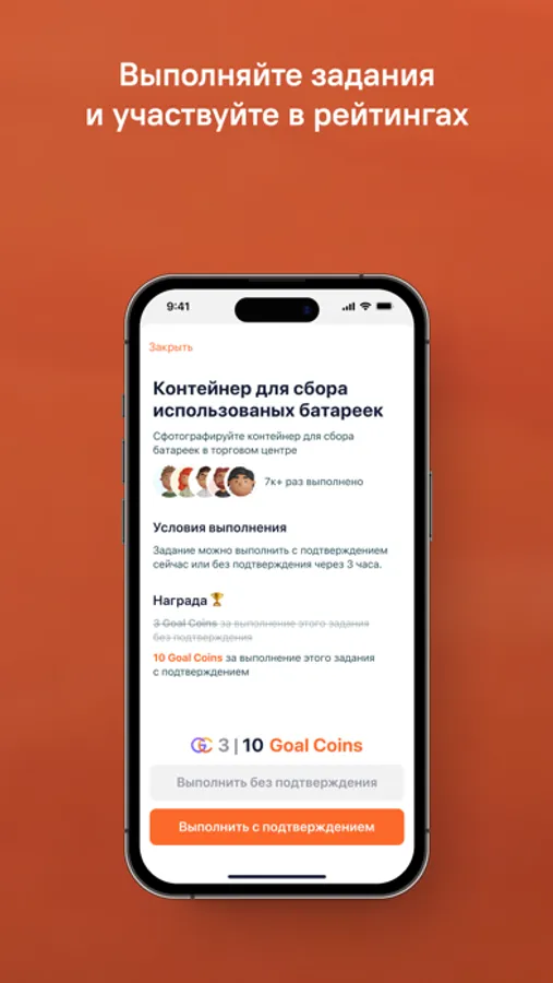 • Выполняйте задания с фото-подтверждением и зарабатывайте ещё больше GoalCoins