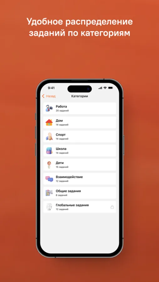 Выбирайте задания из множества различных категорий (дом, работа, хобби, дети и т. д.) и разнообразьте свой рутинный день с приложением Glagoal.