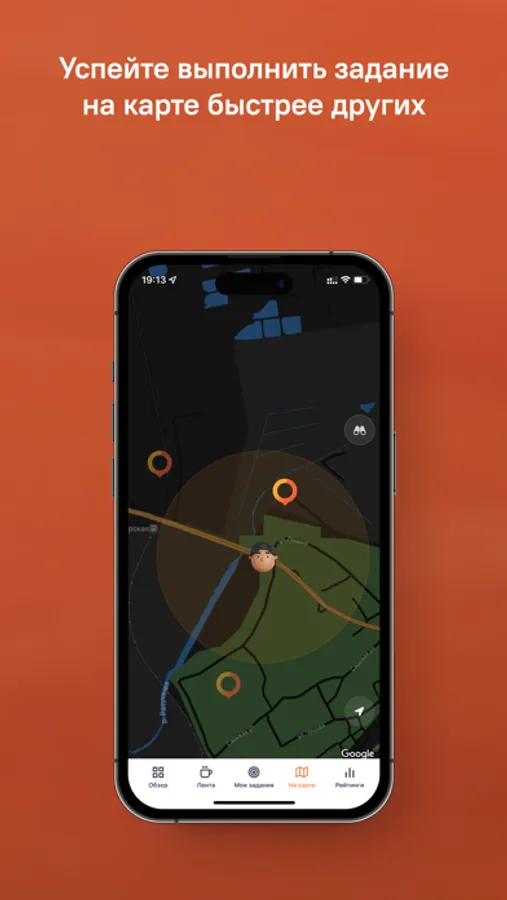 • Перемещайтесь по карте и находите на ней задания поблизости