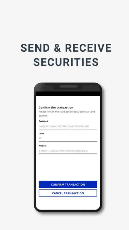 The Eterna Safehold App provides an extra layer of security for the digital securities held in your Eterna account. With this Eterna Safehold App app as a second factor, you confirm the secure transfer of digital securities.