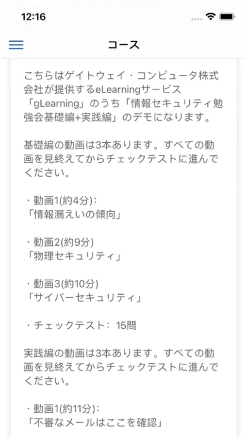 本アプリはゲイトウェイ・コンピュータ株式会社が提供する情報セキュリティ eLearning システム「gLearning」を受講するモバイルアプリです。