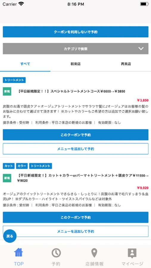 お得なクーポンが配信されます。ネット予約時にクーポン利用での予約も可能なので来店時もスムーズに施術頂けます。